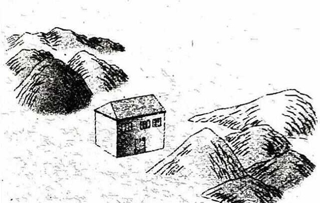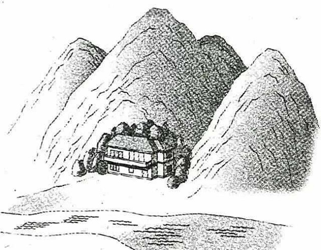 住宅形似手推车,主房后又建有两栋垂直住宅。主吝啬、抛妻弃子,基至家破人亡,家业破败。