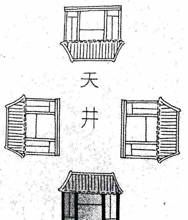 指宅院中房子和房子,房子和围墙所围成的露天空地,即院落。阳宅风水中称:“凡屋以天井为财禄,以面前屋为案山。天井阔狭得中,聚财”,“财气”从大门或从上天降临积聚于天井后,再通过各房门窗“吸”进屋里。