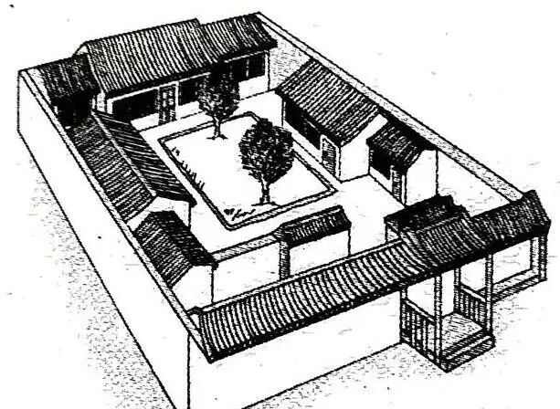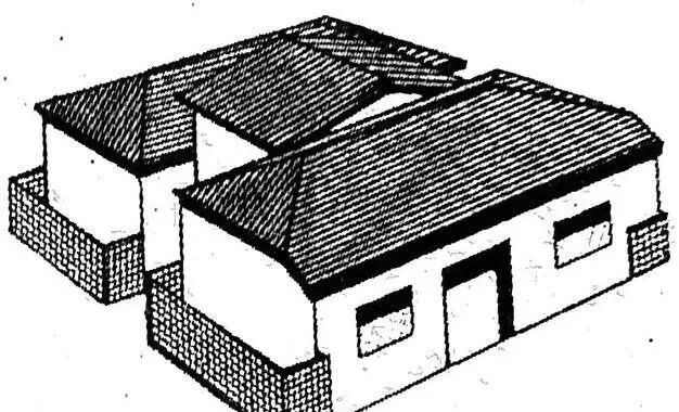 与主屋垂直相连的另一栋房屋外侧又有一栋反直角房屋,这种形状的住宅,主子孙不孝、两代人相处不和睦。