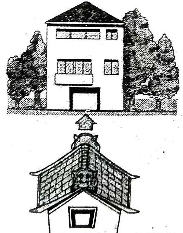 屋宅好像鹅的头射到门一样,建筑物屋顶的头部朝向房屋的入口或玄关。暗示住在这间住宅的人可能发生头部、眼部的疾病,诉讼及法律上的纠纷,盗窃、健康方面的损伤等。